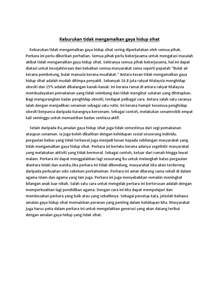 Koleksi Karangan Amalan Gaya Hidup Sihat Dan Pencemaran Alam Project from imgv2-2-f.scribdassets.com Maybe you would like to learn more about one of these? We did not find results for: Contoh karangan ceramah tentang amalan gaya hidup sihat. Check spelling or type a new query.
